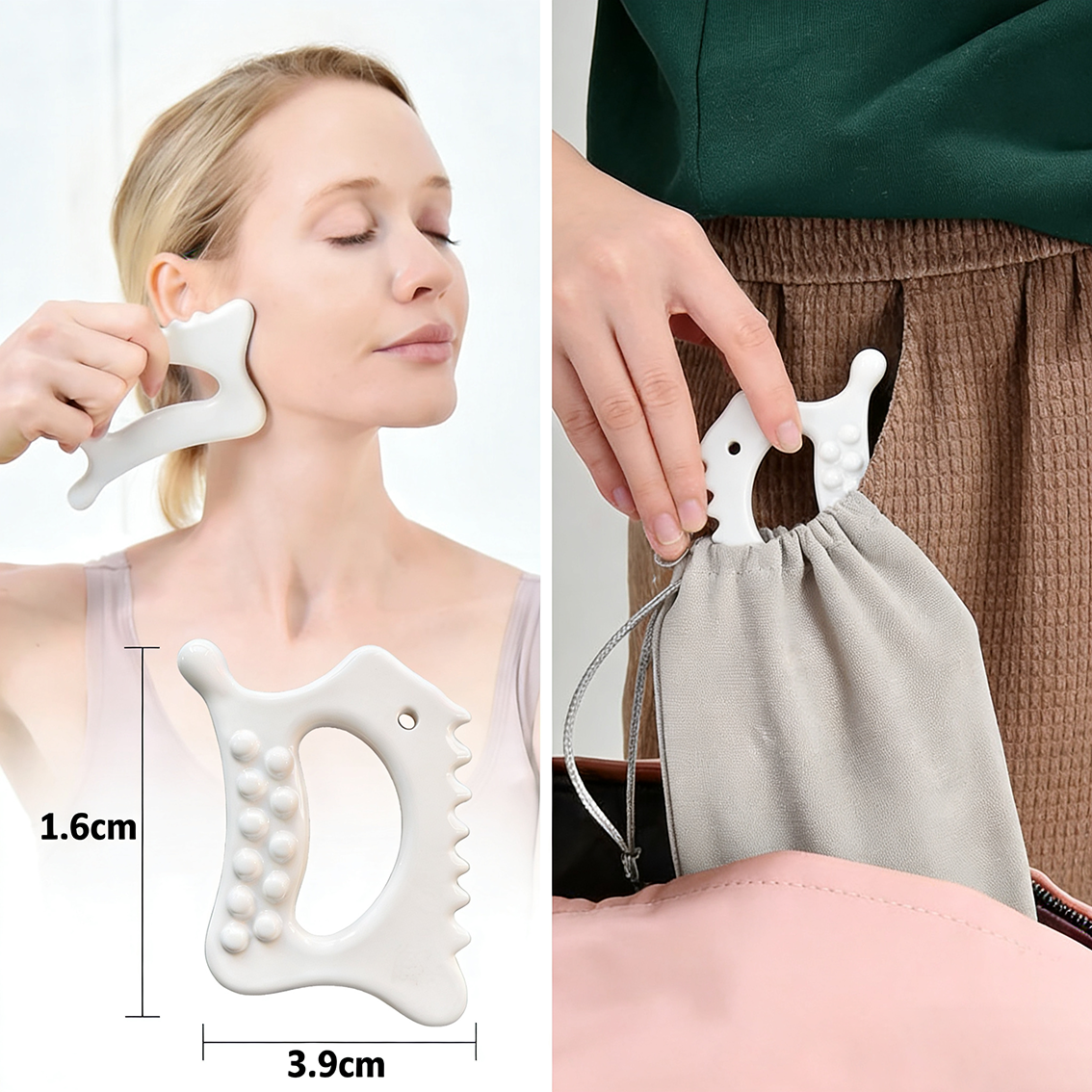 - 【The Benefits of Guasha】It helps to relieve tense muscles and reduce puffiness, promoting lymphatic drainage and making you relax and calm, giving your face a slightly lifted and rejuvenated look.